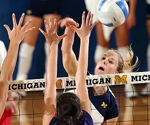 Senior Katie Bruzdzinski(Naperville, Ill./Naperville North) led the way with her second straight 20-plus kill outing, tallying a match-high 22 terminations and adding 14 digs. Senior Stesha Selsky(Manhattan Beach, Calif./Marymount) had her third-straight 20-plus dig outing, leading all Wolverines with 27. Senior Lyndsay Miller(Ida, Mich./Ida) cracked double-digits in the kill column with 15 and led all Wolverines with three blocks, while junior Beth Karpiak(La Grange, Ill./Lyons Township) added 12 kills and two blocks.