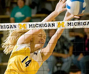 Senior Katie Bruzdzinski(Naperville, Ill./Naperville North) set the tone early with seven kills on 12 swings (.583) in game one and finished with a Wolverine-best 16 terminations. On defense, Miller and sophomore Megan Bower(Indianapolis, Ind./Cathedral) frustrated OSU hitters with six blocks apiece, while senior Stesha Selsky(Manhattan Beach, Calif./Marymount) had 28 digs in the match, including 10 in game three.