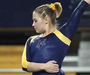 Michigan also used strong individual performances from junior Becky Bernard(Stow, Ohio/Stow-Munroe Falls) and freshman Trish Wilson(Naperville, Ill./Nequa Valley), who shared the uneven bars title with matching 9.900s. The win was the seventh bars title for Bernard and the first for Wilson, who becomes the first freshman since Bernard to win an individual event title in her first collegiate meet.