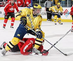 Three other Wolverines were also participating at the 2008 World Junior Championship -- sophomore defenseman Chris Summers(Milan, Mich.) and freshman forwards Max Pacioretty(New Canaan, Conn.) and Matt Rust(Bloomfield Hills, Mich.) each skated for Team USA. The Americans finished fourth in the tournament after losing in the bronze medal game to Russia, 4-2. Team USA went 4-0-0 in the prelims, but then lost to Canada in the semifinals.