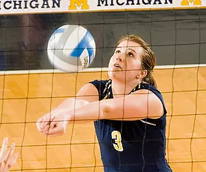 Set three saw the Gophers get in front for the first time, building a 7-3 lead, forcing Michigan into a timeout. Out of the break, Michigan was able to regain its form from the first two sets, eventually tying the score 13-13 on a service ace by senior Kerry Hance(Los Angeles, Calif./Marymount) and a kill by Paz. The score remained close until Michigan used a 5-1 run to take a 23-19 lead and go on to the 25-21 victory.