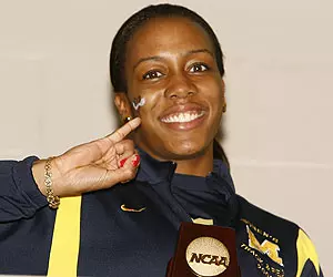 FAYETTEVILLE, Ark. -- Junior co-captain Tiffany Ofili (Ypsilanti, Mich./Ypsilanti) won the national championship in the 60-meter hurdles, running a school-record 7.94 seconds Friday (March 15), as the University of Michigan women's track and field team competed at the NCAA Indoor Championships in the Randal Tyson Track Center. Ofili's national title added 10 points to the U-M score, helping the Wolverines to top the team rankings (18 points) after day one.