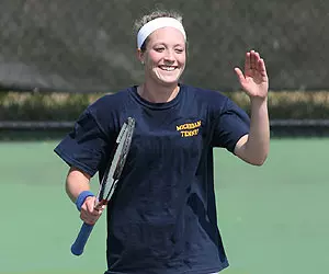 Taney clinched an undefeated home season for U-M (11-0) with a convincing 6-1, 6-1 decision over Zapadalova at No. 2. Taney, who has won 13 of 15 at the second slot, became the third Michigan freshman to reach 20 overall victories this year (20-7). Howard achieved her first career 20-win campaign (20-8) thanks to a 6-2, 6-3 victory over Williams at No. 6. Howard finished her third conference season with a career-best 8-2 record. She has won 15 of 19 in dual-match play this year.