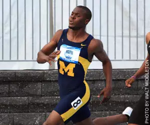 DES MOINES, Iowa -- Fifth-year senior Stann Waithe(Towson, Md./Loch Raven HS) kicked off the University of Michigan men's track and field team's participation at the 2008 NCAA Outdoor Championships on Wednesday evening (June 11) by qualifying for the 400-meter semifinals at Drake Stadium on Jim Duncan Track. The Wolverine sprinter earned the last spot in the semifinals after posting the 16th quickest time during the preliminary round.
