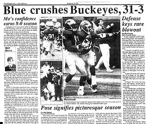 The next play, John Anderson hit Rod Gerald, OSU's quarterback, and he fumbled the ball. Derek Howard recovered it on the eight yard line and the OSU threat was over. Michigan went on to win 14-6, won the Big Ten Championship and went to the Rose Bowl.