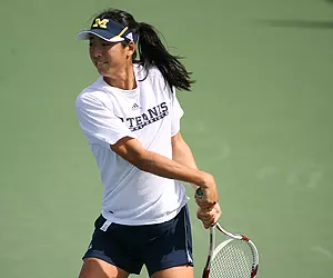 After knocking off the nation's No. 21-ranked player on Saturday (Jan. 17), senior Chisako Sugiyama(Parsippany, N.J./The Montclair Kimberley Academy) handed Duke's No. 43-ranked Ellah Nze a 7-6(3), 6-4 loss to move her overall record to 6-5. With today's victory, Sugiyama became just the third Wolverine in the 36-year history of the program to achieve at least 90 career singles wins.