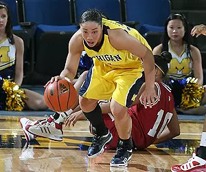 Minnfield scored nine after the intermission and freshman forward Carmen Reynolds(Hilliard, Ohio/Davidson) came off the bench to provide a spark, scoring seven points in the second stanza, but the Maize and Blue was unable to cut the Indiana advantage to less than the final margin of 10 points in the second half.