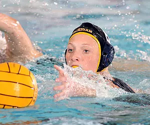 The nightcap started out with the referee's whistle playing a large role. Cal State Northridge started things off with a penalty -hot goal. Less than a minute later, senior Julie Hyrne(Sunnyvale, Calif./Archbishop Mitty) drew a shot for the Maize and Blue that classmate Mary Chatigny(Palm Springs, Calif./Palm Springs) successfully converted. CSUN sandwiched two goals around a Hyrne goal later in the period to take a one-goal edge into the second period. The Matadors scored 2:18 into the second stanza, but U-M was able to stay close on a Sarah Roberts(Costa Mesa, Calif./Newport Harbor) goal from two meters a half-minute later. Midway through the period, Cal State Northridge got a power-play marker to conclude the first-half scoring and send the game into the break at 5-3.