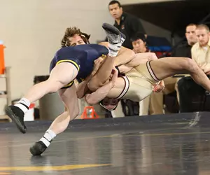 Junior/sophomore Eddie Phillips(Woodland, Mich./Lakewood HS) used a late takedown to seal up a 4-3 comeback victory over Purdue heavyweight Chris Kasten in the final bout. After a scoreless first period, the wrestlers traded escapes and little else until late in the third period when Kasten countered a U-M shot to score. Phillips earned quick escape and immediately shot in on a double leg and, catching the Purdue wrestling reaching, turned back in to finish with less than 10 seconds remaining to pick up his second win over the Boilermaker grappler this season.