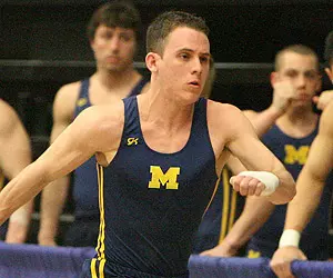 Senior Kent Caldwell (Charlotte, N.C./Charlotte Latin) keeps the men's gymnastics team player blogs rolling as he takes some time to discuss last week's tough meet against Illinois (March 14), as well as the Maize and Blue's upcoming competition against arch-rival Ohio State. Caldwell competes on floor exercise, vault and high bar and has performed these events at the NCAA Team Championship, as well as many other competitions throughout his career. He was the bronze medalist on floor at the 2007 Big Ten Championship, and he was also the first gymnast in the world to complete with a quadruple twisting back flip.