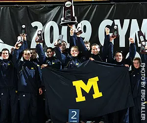 MINNEAPOLIS, Minn. -- The No. 4-ranked University of Michigan men's gymnastics team placed second at the NCAA Championships on Friday night (April 17) with a season-high score of 361.500 at the University of Minnesota's Sports Pavilion. The finish is the highest for U-M since the 2000 season, when it was also the national runner-up. Stanford was crowned the 2009 national champion (362.800), and Michigan beat out third-place Oklahoma by a mere three one-tenths of a point (361.200).