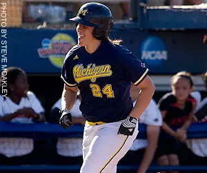 The Wolverines used a two-out rally to take control in the top of the first, stringing together a walk and three straight hits to establish the early 3-0 lead. After freshman designated player Amanda Chidester(Allen Park, Mich./Cabrini HS) initiated the rally with a five-pitch walk, St. Clair connected with the 0-1 pitch and bombed it over the leftfield fence for her first home run in 20 games.