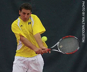 Senior Peter Aarts (Pound Ridge, N.Y./Fox Lane HS) and junior Mike Sroczynski (Chatham, N.J./Fox Lane HS) got the Maize and Blue off to a fast start with a dominating 8-3 triumph over David Anderson and Daniel Stahl, marking the U-M pair's sixth win in nine tries at the No. 3 spot. Senior Andrew Mazlin (Altamonte Springs, Fla./Lyman HS) and sophomore Chris Madden (Lotus, Calif./Ponderosa HS) gave Michigan a 1-0 lead moments later with an 8-4 victory over Stephen Havens and Casey Watt at No. 2. Mazlin and Madden have now won five straight and hold a team-best 14-3 record in dual-match play.