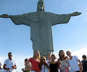 After lunch it was time for our all-day tour of Rio. We had a guide "Gill", who was super pumped to join us on our bus and tell us about this beautiful city. Our first stop was to see the giant statue of the Christ, one of the seven world wonders! We arrived at a train station where we took a train to the top of the mountain. We were graced with the presence of a samba band for our last few stops, and Michelle, Maggie and Juliana showed off their samba skills for the whole group. We got to the top of the mountain but still had 200-plus stairs to climb to get to the base of the statue. The scenery was BEAUTIFUL. We could see the entire city from where we stood. Besides a few cases of the fear of heights, everyone loved the view from up top.