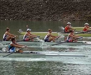 The next morning came and the wind changed from the small head wind the day before to a 20 mph tail wind and some very rough water conditions. We all knew what we had to do and take a risk in the first1,000 to get ahead. We were fast off the start and stayed right with the Netherlands who typically have a very strong four. Out in laneseven we were right next to land and the bike peloton. There were coaches yelling in all different languages, whistles blowing but we just keyed into our coaches -- Anne and Steve. By the thousand (meter mark) we moved past Belarus and into the lead. We didn't know that we were in the lead and we just kept pushing. By the third 500, we were still in the lead but in the middle of it, because of the rough water, I hit my speed coach and knocked it right out of the boat and we were without ratings for the rest of the race. The last 500 hundred had the worst water and we were even with Belarus. We had some lead on the Netherlands so we tried to keep it clean without pushing it too hard and risking catching a crab. We crossed the finish line with just less than a second behind Belarus and earning a spot in the grand final! The grand finals start on Sunday, our four has the first grand final of the day at 10:48 am!