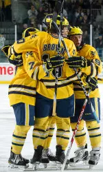 Senior co-captain Carl Hagelin (Sodertalje, Sweden) registered three helpers on Michigan's four goals, tying a career high, senior goaltender Shawn Hunwick (Sterling Heights, Mich.) rejected 37 shots, and senior left wing Scooter Vaughan (Placentia, Calif.) booked the first game-winner of his career.