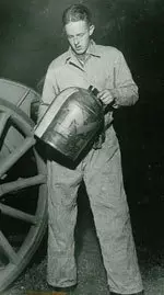 According to the news accounts, four men wearing "dark goggles" and "hats pulled down over their eyes" inside a large Cadillac stopped and rolled out what appeared to be the Little Brown Jug. As they sped off, K.D. Smith, an attendant at the gas station, scooped up the jug and later posed for local cameramen who raced to the scene.