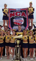 DAYTONA BEACH, Fla. -- The University of Michigan cheerleading team claimed the national title at the 2013 National Cheerleaders Association (NCA) and National Dance Alliance (NDA) Collegiate Cheer and Dance Championship completed today (Friday, April 12). This is the largest college cheer and dance championship in the world.