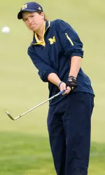 Leading U-M yesterday with a three-over 75, sophomore Lauren Grogan (Columbus, Ohio/Bishop Watterson HS) followed today with a 79 and is tied for 27th at 154. Like Shimel, Grogan made her back-nine turn at three over, before two front-side birdies, on Nos. 2 and 5, helped her stay at two over with two holes remaining. However, a pair of closing double bogeys had her finish the day at 79 as she remains among the top 30 individually.