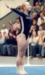 A. It's really difficult to remember that meet, actually. To be able to do that well against the team from my home state was very nice. My best friend, Courtney, came into town to watch. I remember having a good routine on balance beam. I think I got a 10.0.