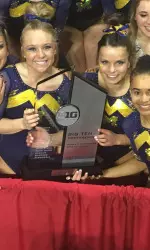 PISCATAWAY, N.J. -- Seniors Nicole Artz and Talia Chiarelli completed their college careers with four straight Big Ten championships as the No. 9-ranked University of Michigan women's gymnastics team made it four in a row with a meet-high score of 197.300 on Saturday (March 18) at Rutgers Athletic Center.