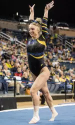 This year she has won 12 event titles to go with five all-around wins. She ranks eighth nationally on floor, tied for 13th in the all-around and tied for 23rd on bars.