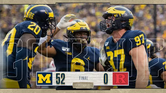 The defense smothered the Scarlet Knights, holding them to 152 yards of total offense and an average of 2.9 yards per play. Senior viper Khaleke Hudson led the defense team with seven tackles, while junior Kwity Paye was in the backfield often, amassing six tackles, including three-and-a-half tackles-for-loss.