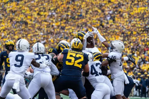 Penn State did not convert a first down until 8:05 remaining in the second quarter, which is the longest an opponent has been held without a first down in a game this season. U-M moved the chains 18 times to PSU's one before the break.